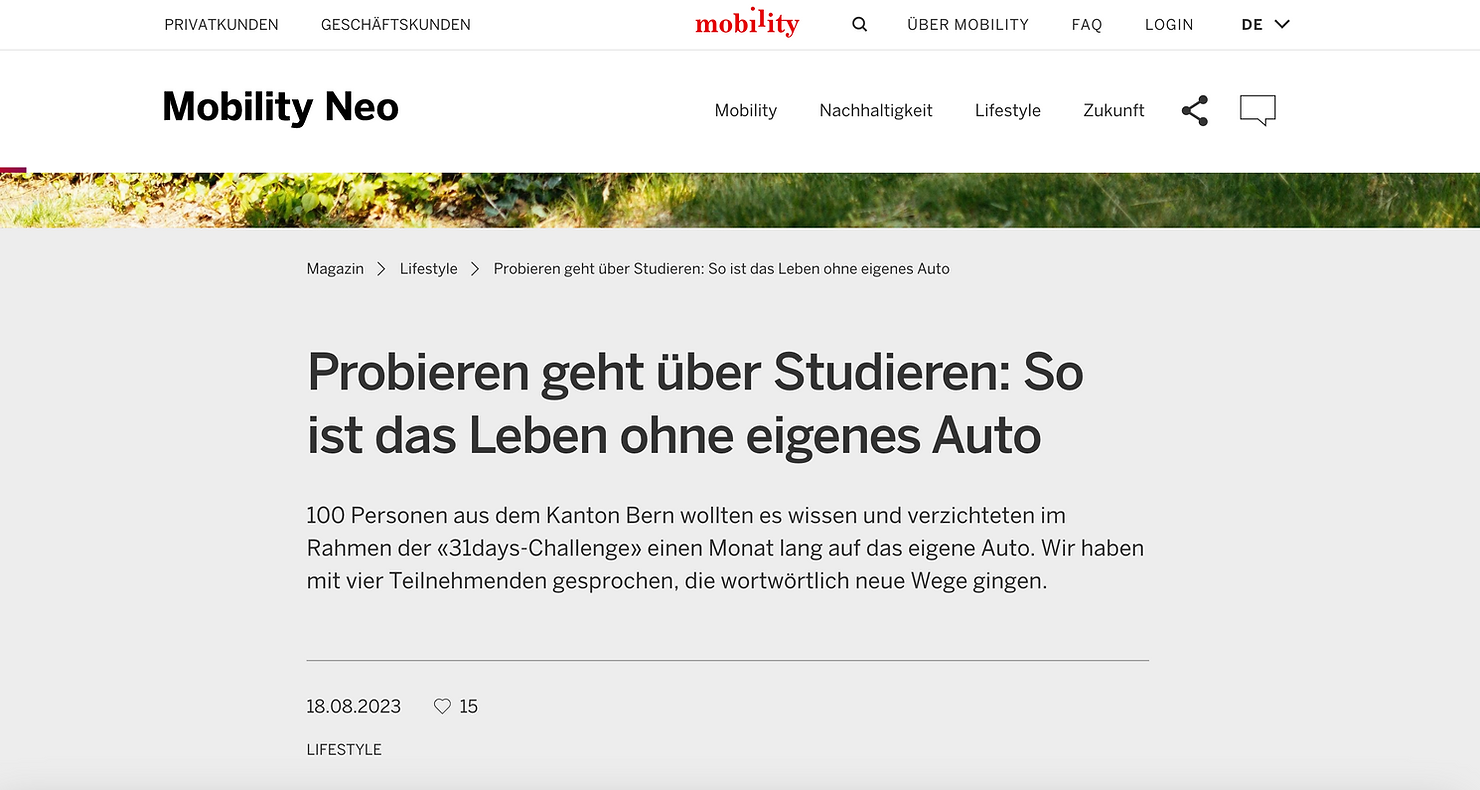 Super lesenswerter Blog-Post von Mobility mit dem knackigen Titel «Probieren geht über Studieren: So ist das Leben ohne eigenes Auto».